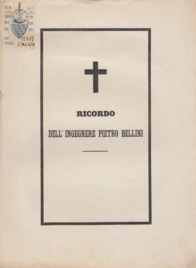 In-8 (Cm 23 x 17), pp. 7, brossura editoriale. Ex libris Pieri Gerini. Ordinari segni del tempo. MOLTO BUONO - Pietro Bellini nacque a Pisa il nel 1817. Fu ingegnere del comune di detta citta' .