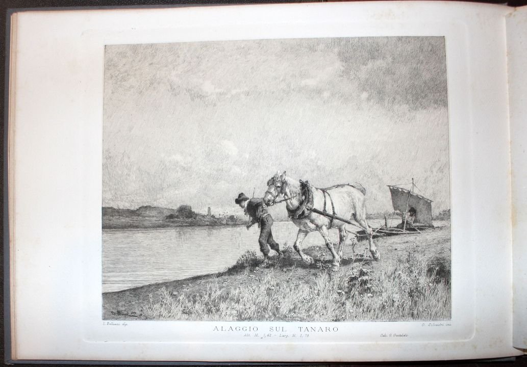 Album cm. 33,5 x 23,5. Pp. 44, (2). Leg. percallina grigia con titoli oro in cornice ornamentale. Copia in buono stato. Con 8 tavole fuori testo, 3 di queste litografiche (Alaggio sul Tanaro di Lorenzo Delleani, Cortesia Claustrale di Giacomo Grosso e Un Angolo Tranquillo di Carlo Chessa) riproducenti alcune delle opere esposte.