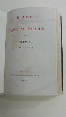 RICORDO DELLE FESTE CATTOLICHE DI BRESCIA NELL`APRILE MDCCCLXXXIII