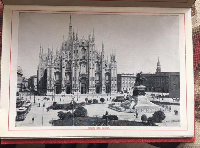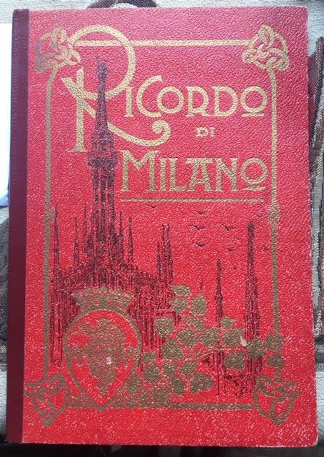 >Album in-8, leporello composto da 20 pagine con scorci fotografici della città di Milano (4 immagini a piena pagina, le restanti disposte due per pagina). Legatura editoriale in percallina rossa, con immagine del Duomo e decorazioni oro in stile floreale. Straordinario ricordo fotografico della Milano dei primi '900. Ottimo esemplare, ex-libris Giannalisa Feltrinelli al contropiatto anteriore.