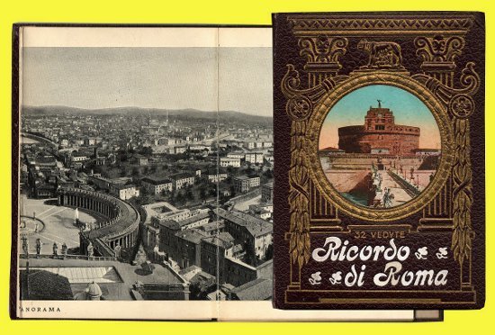 in 16mo (cm 17x11,5) Album fotografico a fisarmonica 32 vedute in b/n. Copertina in rilievo a colori, didascalie in 4 lingue sul retro delle fotografie.
