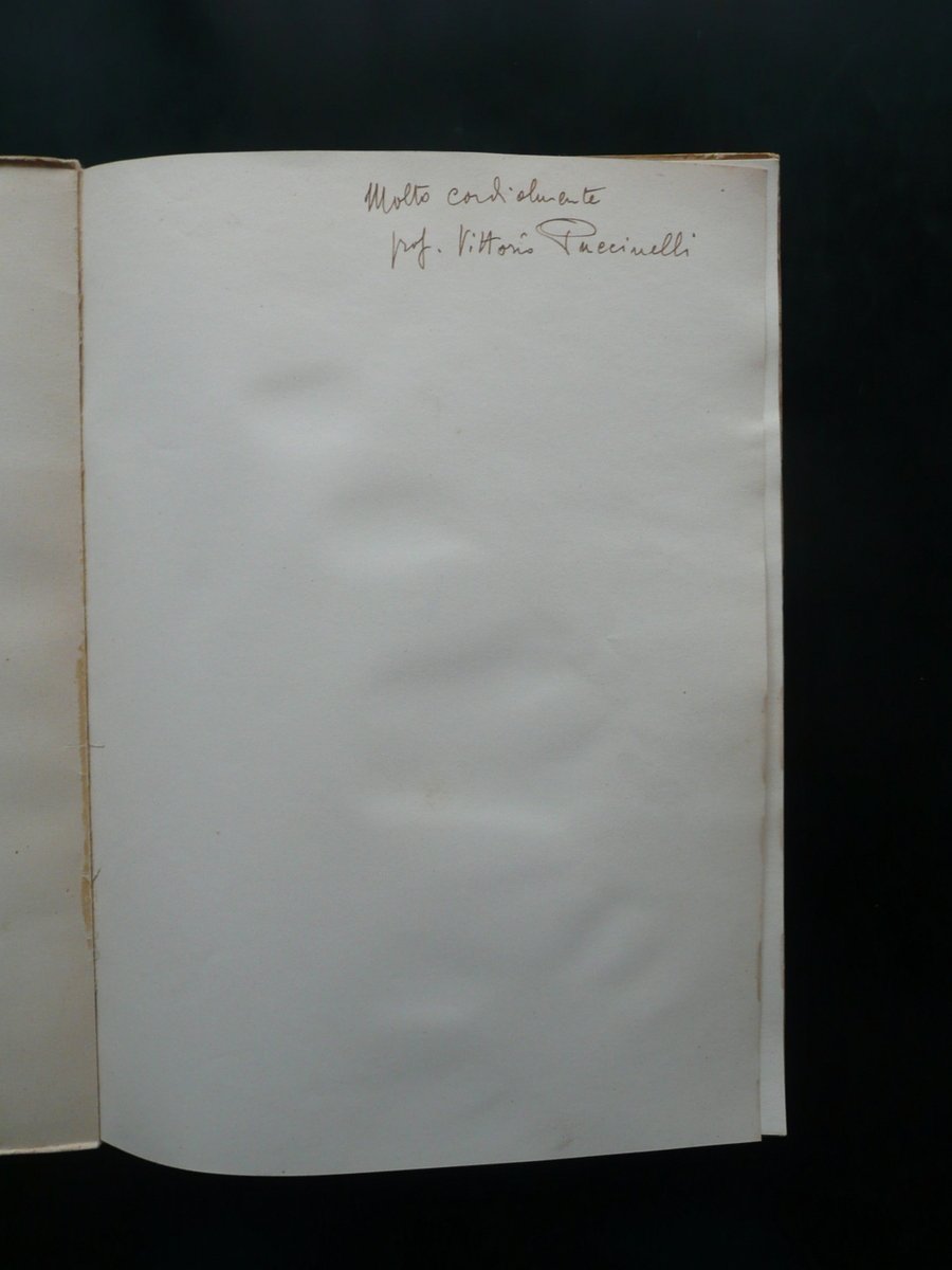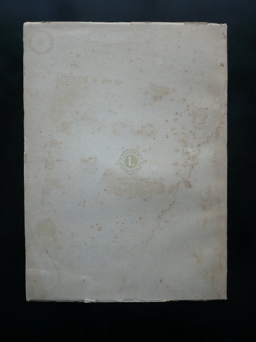 Giuseppe Ravegnani, Rievocazione di Filippo de Pisis Ferrara - Casa Romei - 15 giugno 1958 Lions Club di Ferrara (a cura del), Ferrara 1958, cm 33x24, pp. 33 con alcune belle ill. in b/n f. t.; brossura ed. ill. a colori. Contropiatti entrambi con timbretto - ex libris del precedente proprietario. Prima bianca con dedica autografa del Prof. Vittorio Puccinelli al margine sup. Condizioni di conservazione Esemplare in buone condizioni con tracce d'uso; brossure con alcuni piccoli lievi aloni e bruniture, qualche gora di vecchia umidità che non interessa le pagine; margini e angoli con alcuni minimi difetti e strappetti. Interni buoni; pp. 32-33 leggermente aperte al dorso, esemplare compatto. Edizione fuori commercio a cura del Lions Club di Ferrara. SETT89.L8210 N