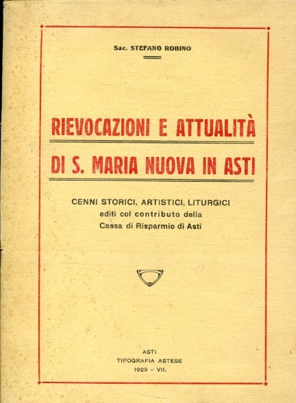 Rievocazione e attualità di S. Maria Nuova in Asti. Cenni storici, artistici, liturgici editi col contributo della Cassa di Risparmio di Asti