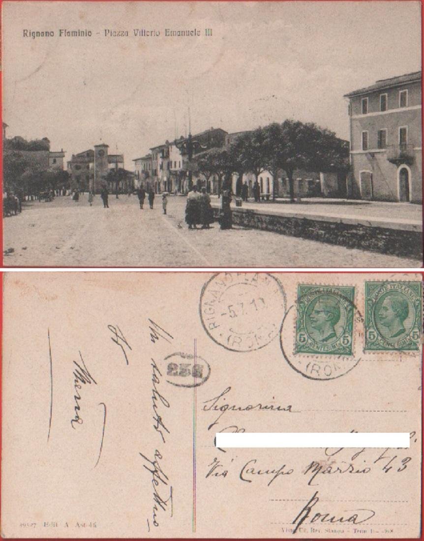 Rignano Flaminio (RM). Piazza Vittorio Emanuele III. Viaggiata 1910. Animata