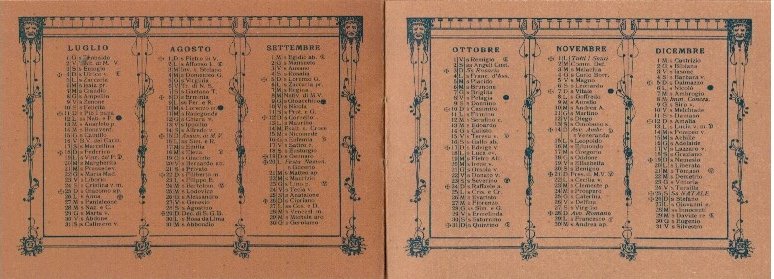 Calendario del 1915 composto da 4 facciate, bella copia ben conservata usuali tracce del tempo