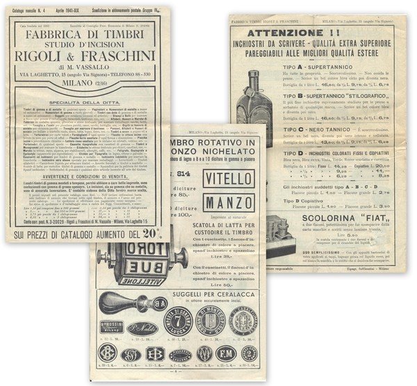 Rigoli & Fraschini. Fabbrica di timbri, studio d'incisioni Milano. Catalogo mensile n. 4 aprile 1941.