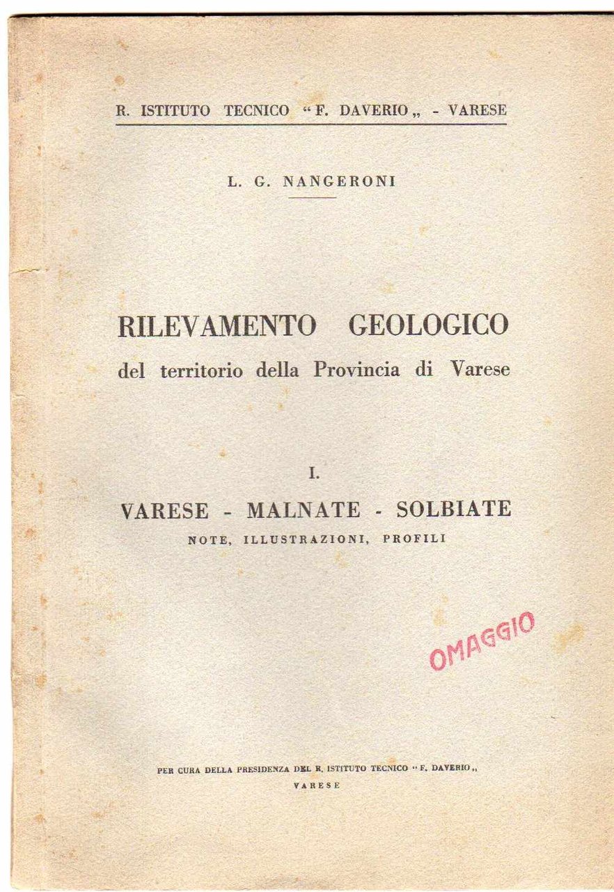 Rilevamento geologico del territorio della Provincia di Varese - I VARESE MALNATE SOLBIATE - Note, illustrazione, profili