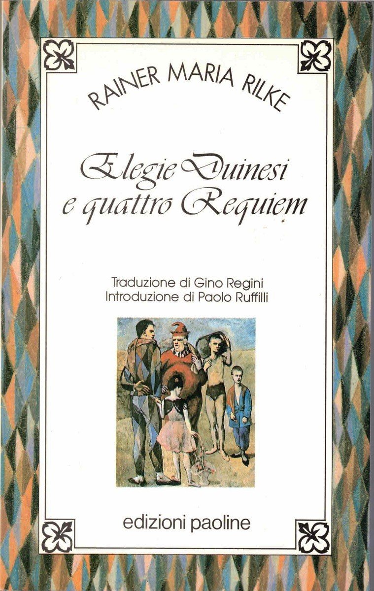 Rainer Maria Rilke, Elegie duinesi e Quattro Requiem, traduzione di Gino Regini, introduzione e note di Paolo Ruffilli, Edizioni Paoline, Cinisello Balsamo 1991, pp. 191, cm 20, br. ed. Collana Poesia uomo, vol. 2. Titoli delle opere originali: Requiem – Duineser elegien. Minima brunitura della carta, per il resto perfetto.
