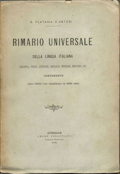 Rimario universale della lingua italiana. Scientifico, storico, letterario, geografico, mitologico, biografico, ecc. contenente oltre 70000 voci classificate in 6350 rime.