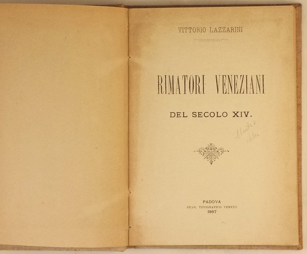 In-8 (19 cm) 104con allegate aggiunte e correzioni. Piena tela con tassello al dorso.
