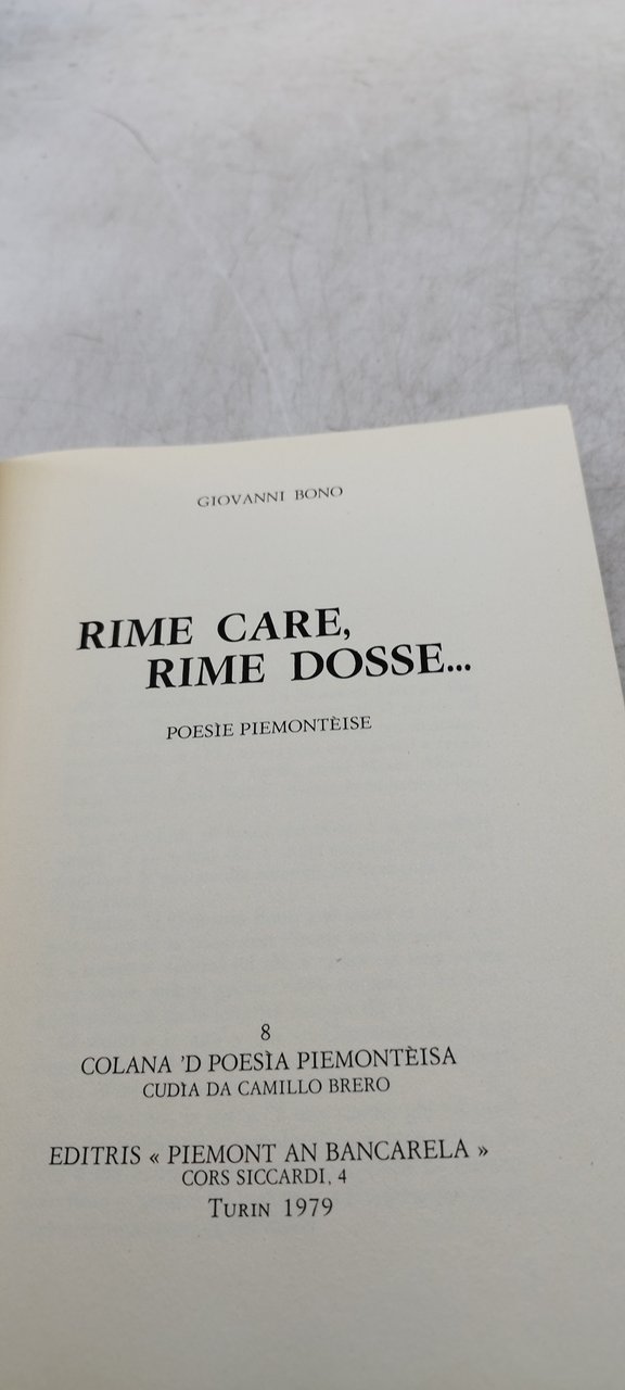 giovanni bono rime care rime dosse. , piemonte in bancarella 1979 , 175 °°