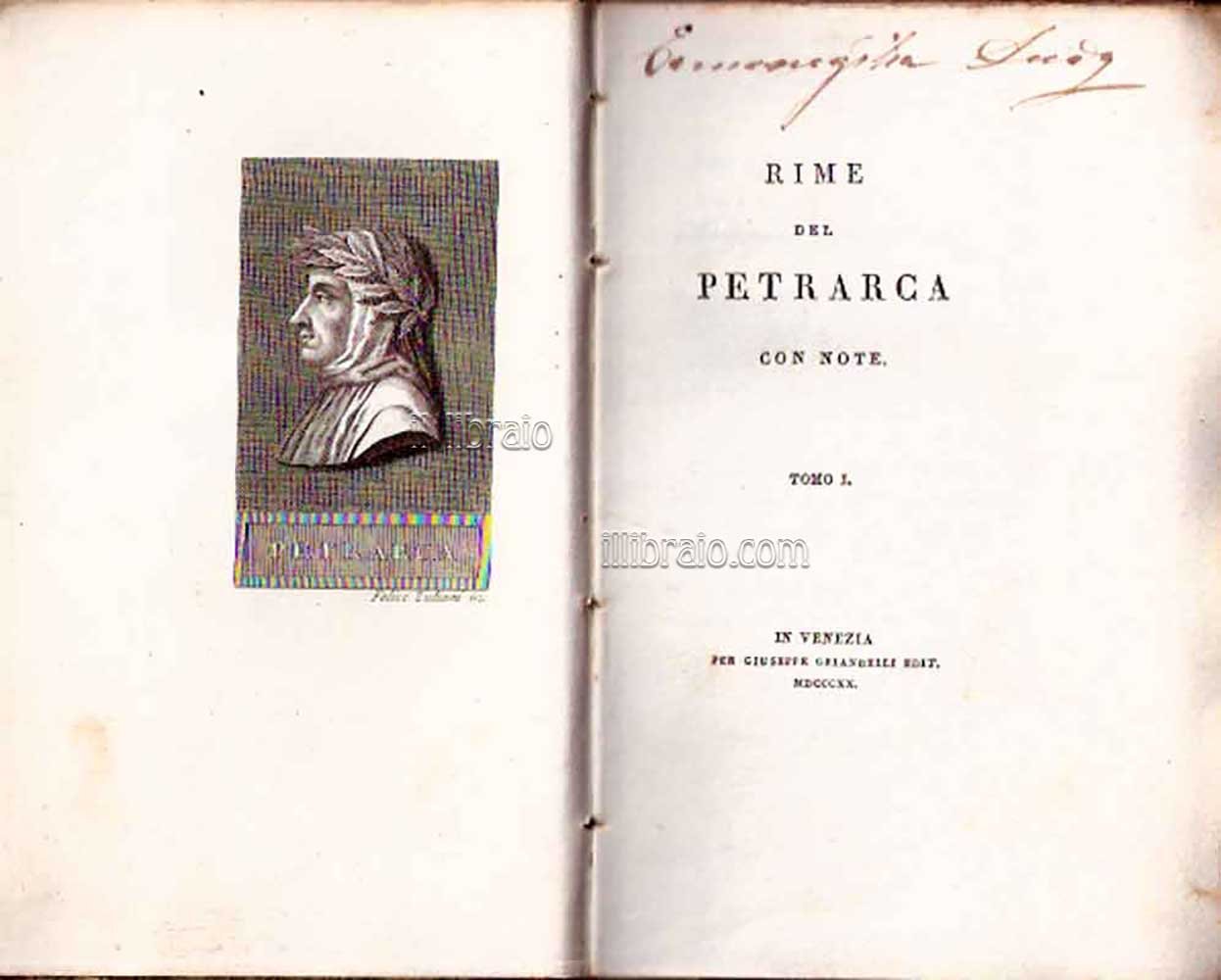 2 voll.; in 16°; pp. XVI, 352; (6), 356; leg. in mezza pelle. 2 splendide incisioni f.t. in antiporta, ad opera dell'inc. Felice Zuliani, raffiguranti Petrarca e Laura (ottimi)