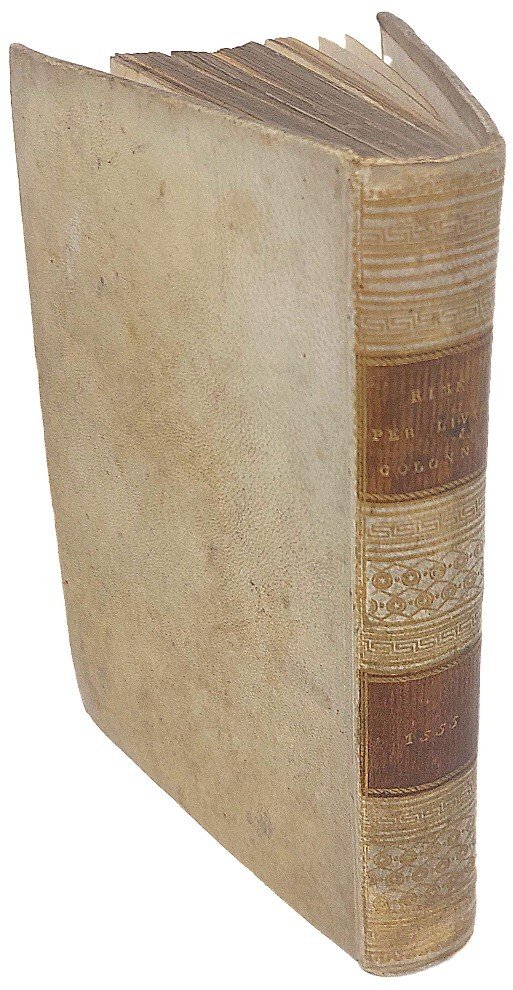 >in-8 , ff. (4), 137, (6); legatura posteriore piena pergamena. Titolo su duplice tasssello e ricchi fregi oro al dorso. Prima edizione, titolo con il ritratto xilografico di Lìvia Colonna entro cornice ovale con amorini, ripetuto 3 volte: al frontespizio, al verso della carta 77 ed al recto dell'ultima carta. Raccolta di 161 sonetti composti in onore di Livia Colonna da vari autori, tra i quali: Mons. Della Casa, Caro, Molza, Porrini, Cappello, Cenci, Guarnelli, Puteo e molti altri. Bell'esemplare, lievi fioriture nel margine bianco dei primi tre fogli, timbro di biblioteca estinta al titolo. Adams,I,2415. Cfr. Melzi,II, p. 446: “Queste rime furono raccolte da Francesco Cristiani. Il sonetto, che principia: “In riva al Tebro altier sul manco lato..” porta il nome di Annibal Caro, ma il Seghezzi (nella vita di lui) lo restituisce a F. Rainieri, gentiluomo milanese” -