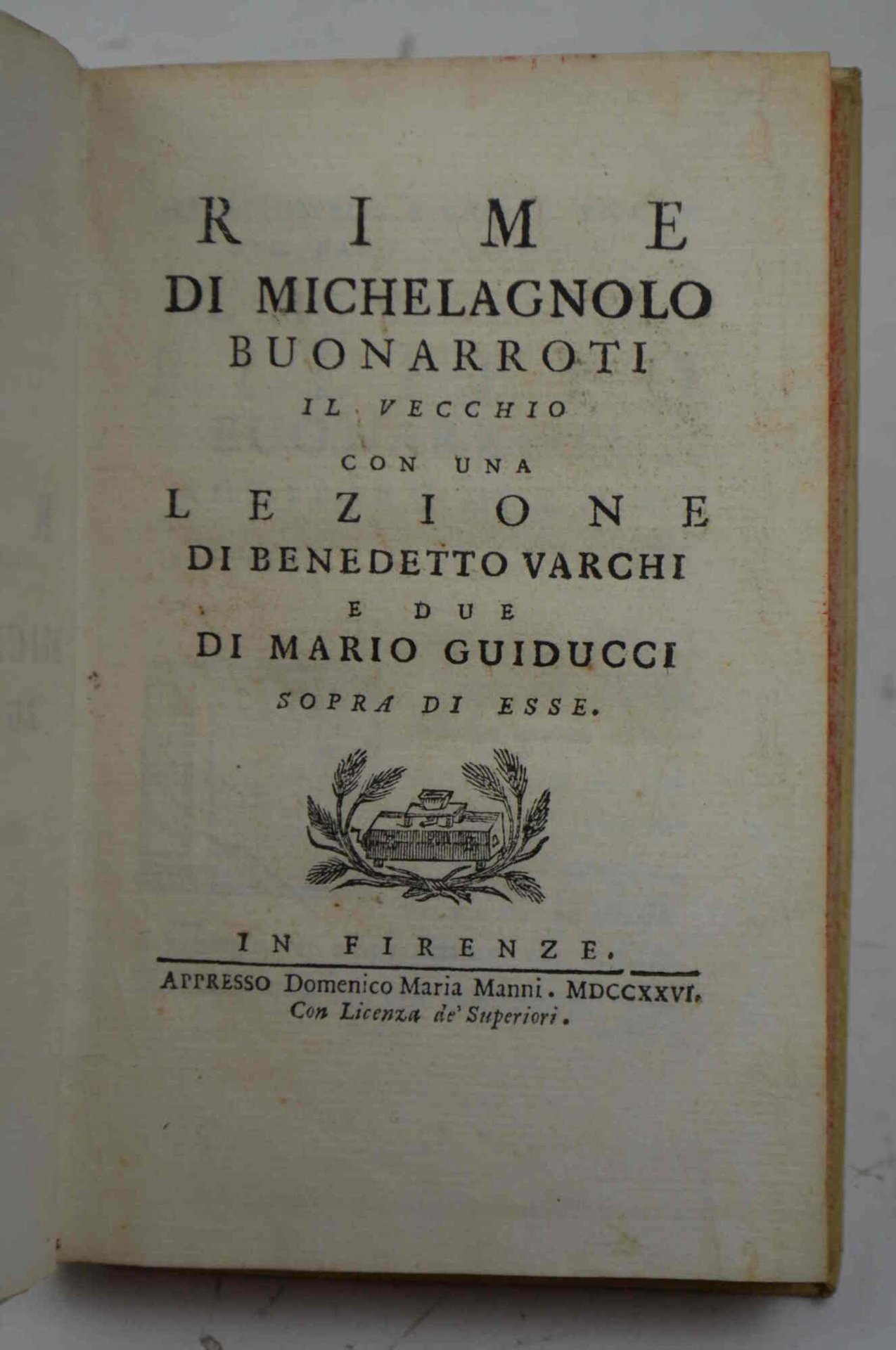 Rime di Michelagnolo Buonarroti il vecchio con un alezione di Benedetto Varchi e due di Mario Guiducci sopra di esse.
