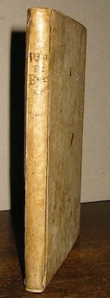 8vo (cm. 17,3), 117(3) pp. Legatura coeva in piena pergamena con titolo ms. al ds. Fioriture diffuse e alcune carte brunite (ma ben leggibili). Ex libris al contropiatto anteriore. Rara edizione. Non in Gamba né in Grasse né in Br. Libr. ICCU cita due Biblioteche italiane in cui è presente.