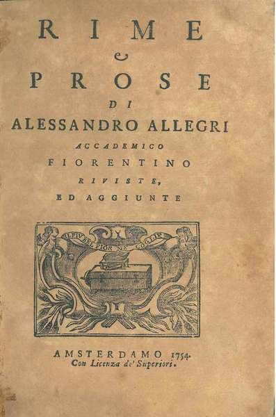 Rime e prose di Alessandro Allegri accademico fiorentino riviste ed aggiunte