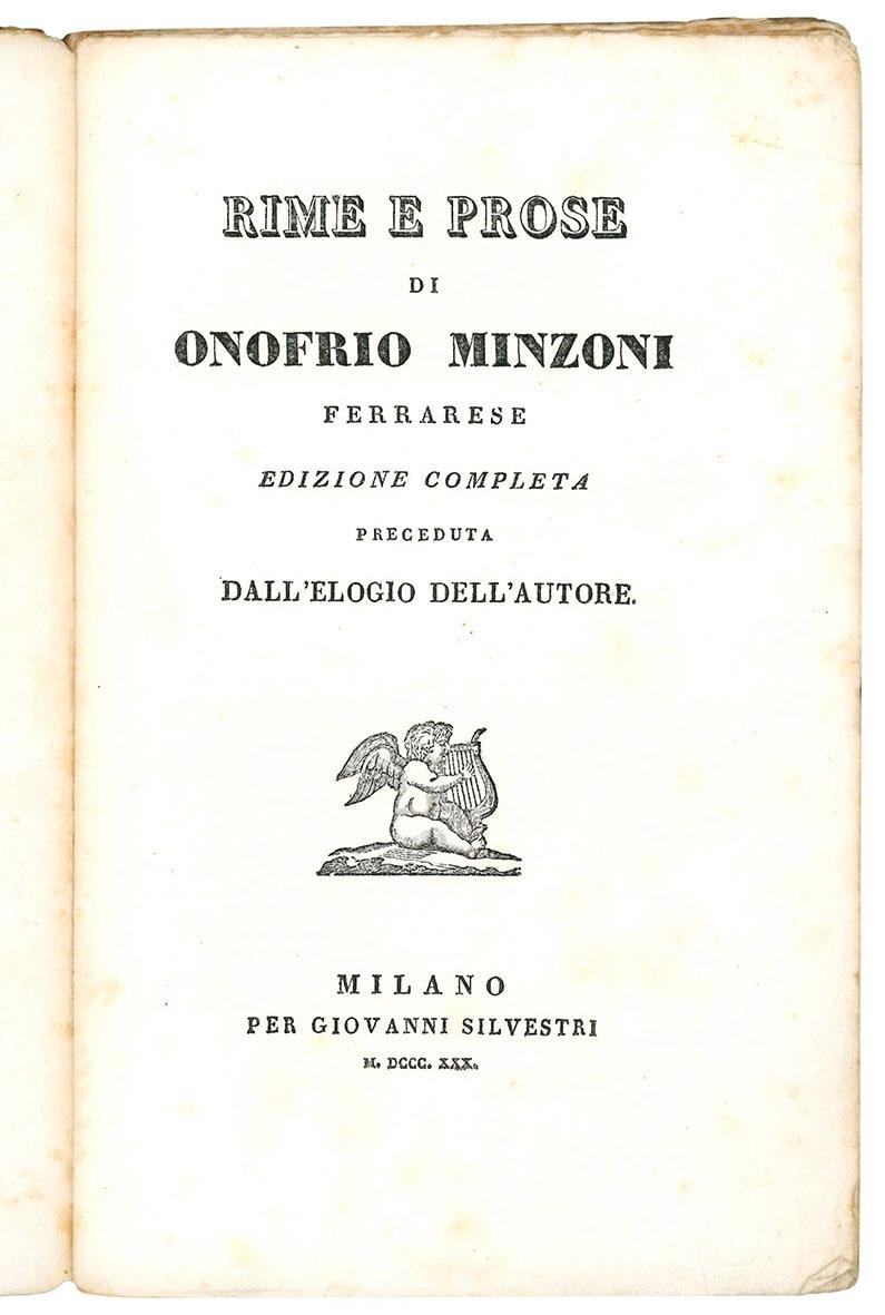 Rime e prose di Onofrio Minzoni ferrarese. Edizione completa preceduta dall'elogio dell'autore.
