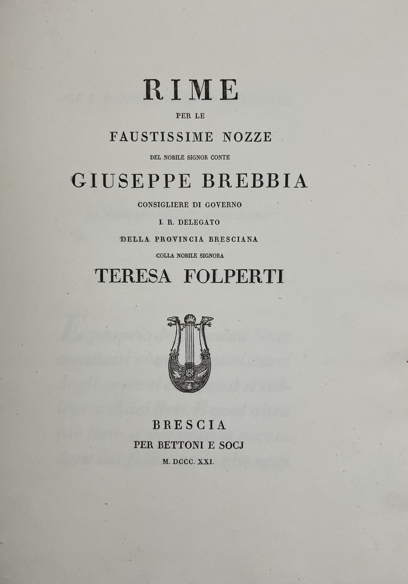 Rime per le faustissime nozze del nobile signor conte Giuseppe Brebbia […] colla nobile signora Teresa Folperti.