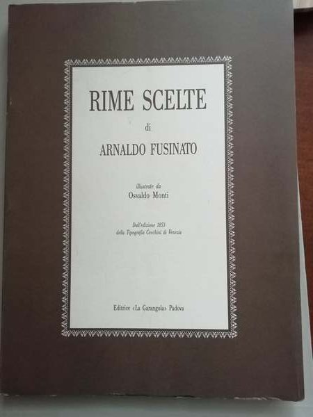 Ristampa anastatica dall'edizione del 1853 della tipografia Cecchini di Venezia edita nel centenario della morte Raccolta di poesie di Fusinato: Lo studenti di Padova, Un atto di contrizione, Il laureando, Un progetto scientifico, Il medico condotto, La ricetta del medico condotto, Le necrologie. In brossura. Illustrate da Osvaldo Monti. Pp. 117. Ottime condizioni.