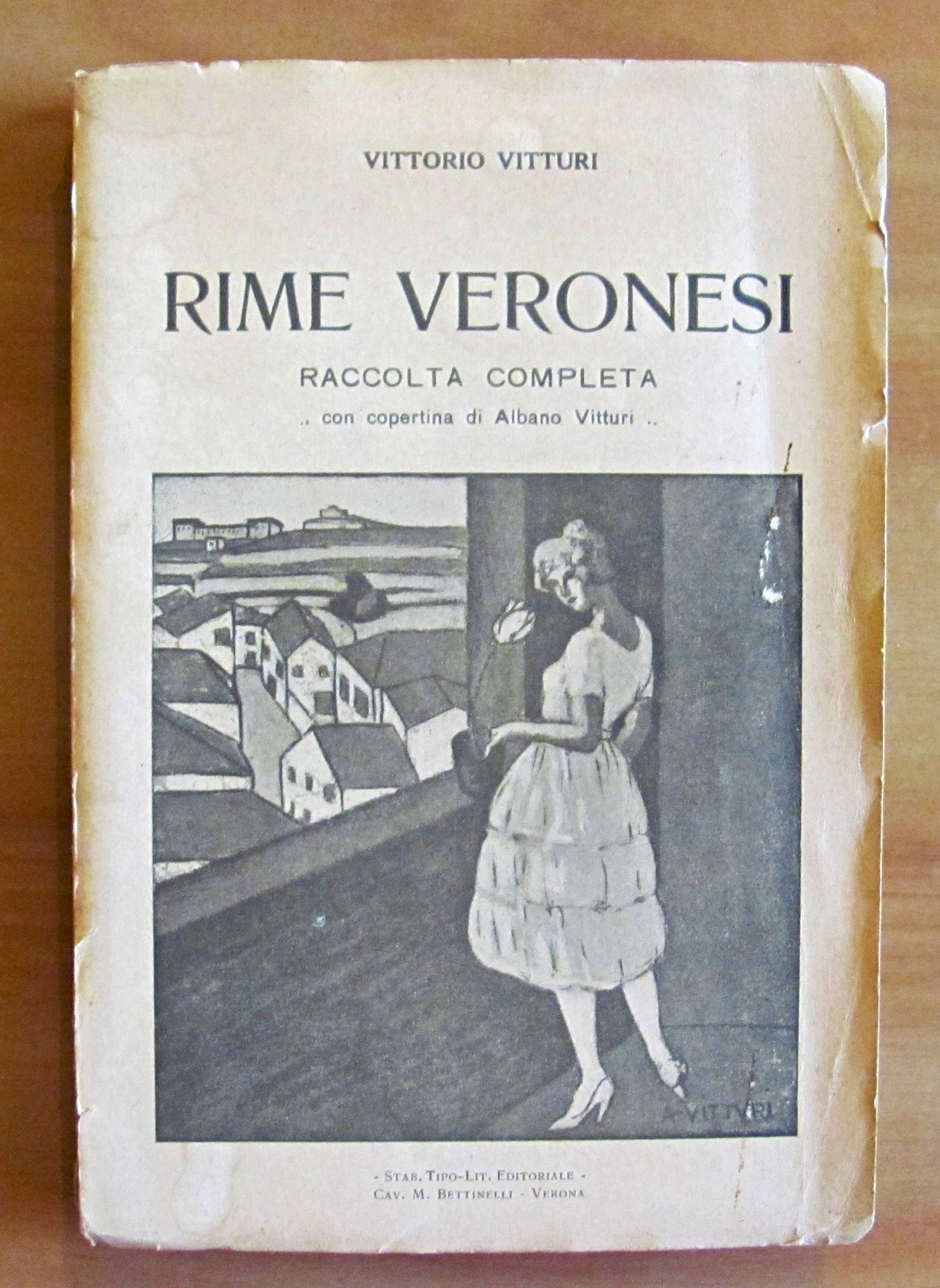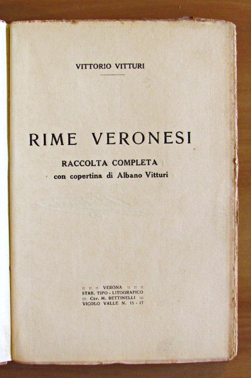 Copertina di Albano Vitturi. Ritratto in b/n dell'autore in antiporta protetto da velina, 2 tavole in b/n f.t. e 1 illustrazione in b/n n.t.Stab. Tipo-Lit. Editoriale Cav. M. Bettinelli - Verona, s.d. anni '40. Brossura editoriale con minime imperfezioni alle copertine e in basso alla cerniera anteriore del dorso. Timbro alla retrocopertina. 13x19,5; pp.282. RARO. BUONISSIMO STATO , Molto buono (Very Good)