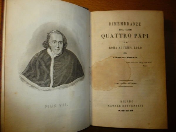 RIMEMBRANZE DEGLI ULTIMI QUATTRO PAPI E DI ROMA AI TEMPI LORO CARDINALE WISEMAN