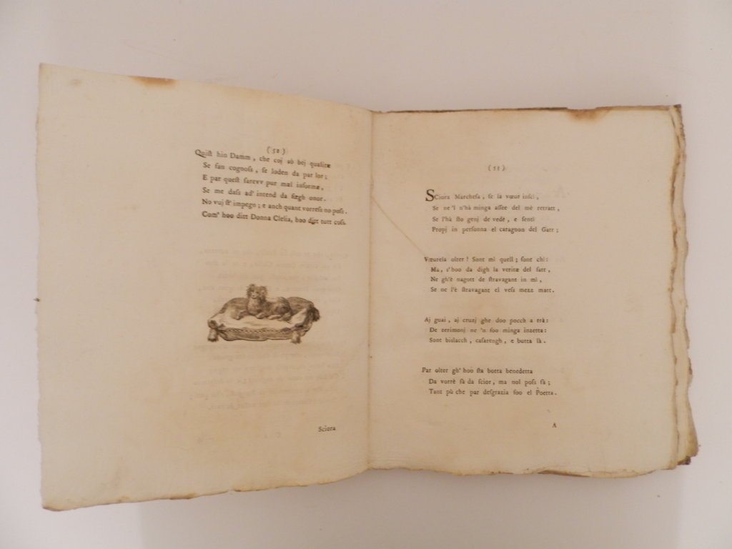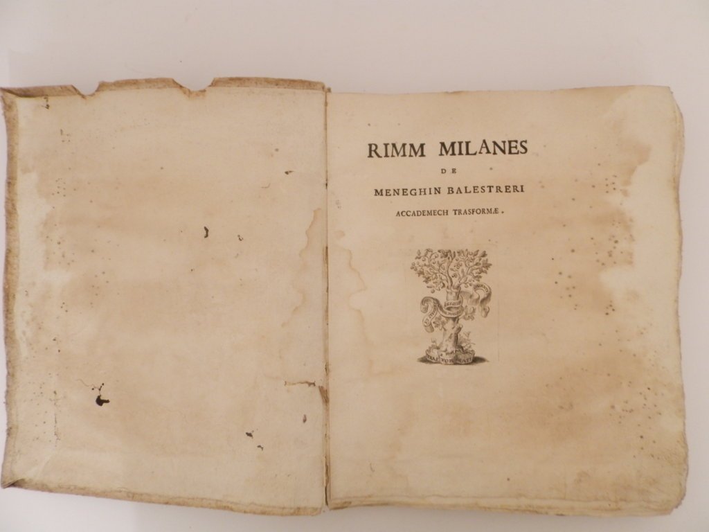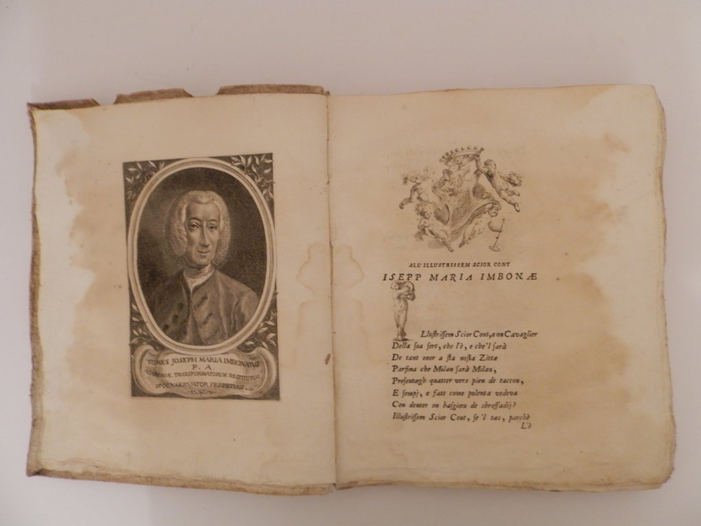 4^, pp. 174, (4), vignetta incisa al frontespizio: Simbolo dell'Accademia dei Trasformati, Albero con frutta e motto: Ex Steriles Platani Malos Gessere Valentes. Ritratto inciso Di Giuseppe Maria Imbonati dedicatario dellOpera e Ritratto dell'Autore fuori testo, incipit, iniziali e finalini incisi. Leggero alone alle prime 15 carte che non disturba la lettura del testo. Copertina in cartone coevo rustico sciupata. L'opera è in dialetto milanese. Esemplare discreto. Prima edizione dell'opera più importante del celebre scrittore dialettale milanese. Cfr. Hoepli 39; Predari 372. *** TUTTI I NOSTRI LIBRI SONO VISIBILI PREVIO CONTATTO MAIL O TELEFONO NELLA NUOVA SEDE DI MILANO: LIBRERIA COSMOPOLIS, VIA JOMMELLI, 22. ***