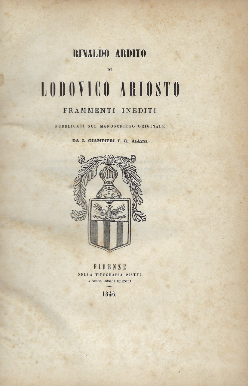 Rinaldo Ardito di Ludovico Ariosto. Frammenti inediti pubblicati sul manoscritto originale da I. Giampieri e G. Aiazzi