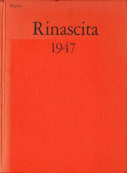 1 v. : ill. ; 29 x 21 cm. Ristampa anastatica dei numeri della rivista «Rinascita» fondata da Palmiro Togliatti dal giugno al dicembre 1947. Edizione fuori commercio riservata agli abbonati della rivista «Rinascita» per l'anno 1977. Legatura editoriale, coperta in cartone rigido in tela rossa con il titolo impresso in nero al piatto e al dorso. All'interno alcune illustrazioni in b/n. Leggero ingiallimento delle pagine, nel complesso esemplare integro. Codice libreria 6152.