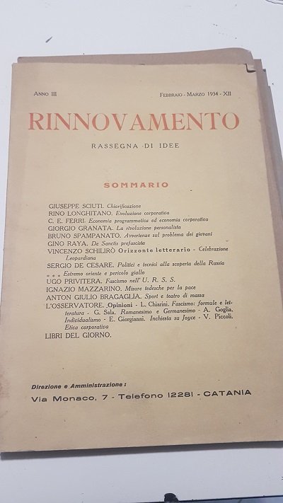 RINNOVAMENTO RASSEGNA DI IDEE ANNO III FEBBRAIO MARZO 1934 XII