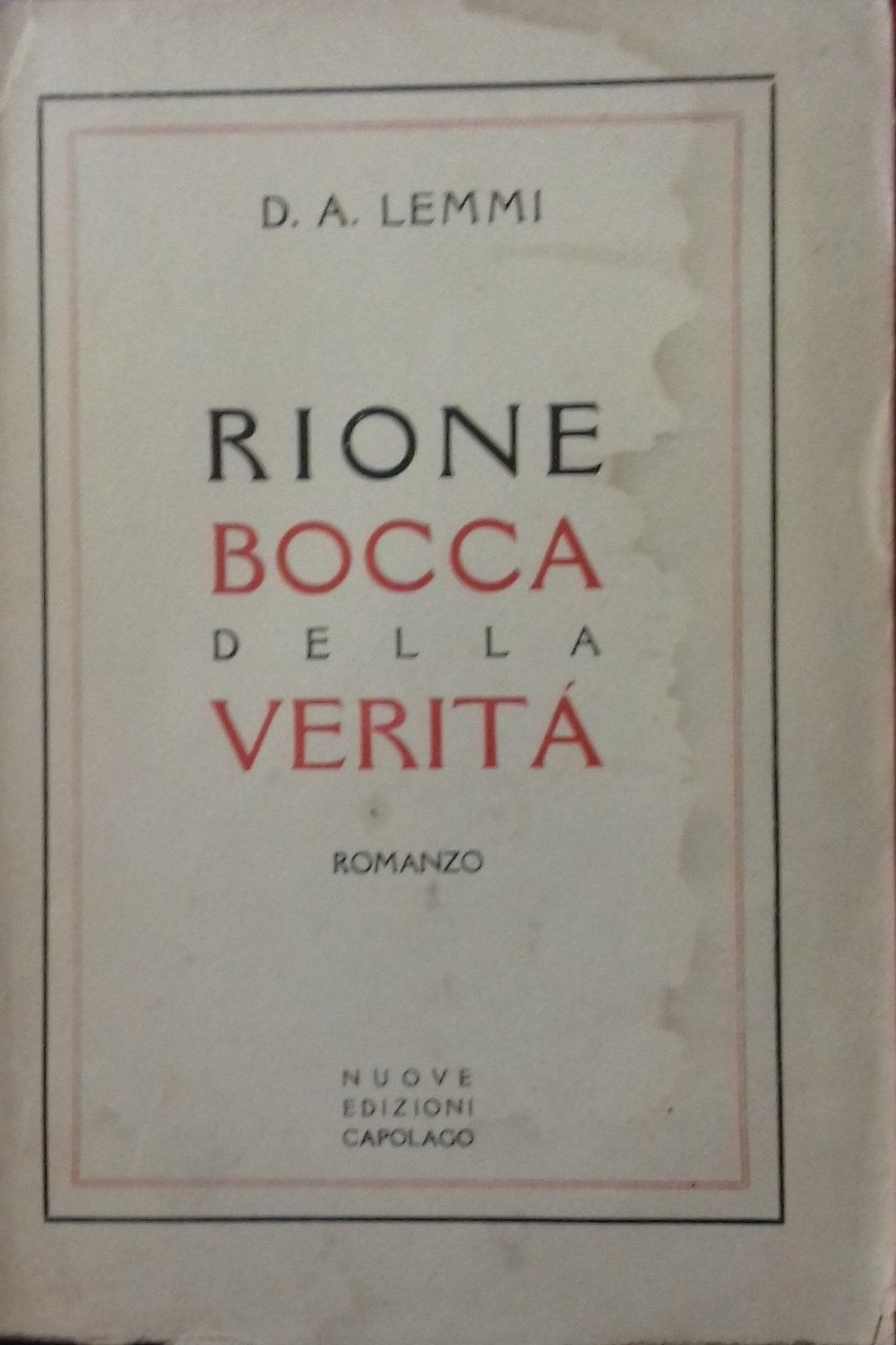 Brossura editoriale. Copertina in cartoncino, stanca, lunga macchia di umidità al margine esterno della prima. Dorso con mancanze. Tagli e bordi pagina bruniti. Pagine alquanto ingiallite. Due timbri ed una etichetta di libreria sul frontespizio. Stampato in Francia perché proibito in Italia. Mediocre (Poor) .