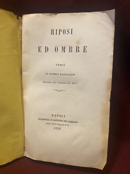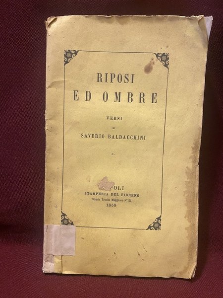 Riposi ed ombre versi di Saverio Baldacchini raccolti l'autunno del 1857.