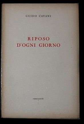 In 8°; 71, (1) pp. Brossura editoriale. Uno strappetto senza perdita di carta a pagina 65 ed al margine basso delle ultime 8 carte (questo assolutamente ininfluente) e nel complesso esemplare in buone-ottime condizioni di conservazione e ancora a fogli chiusi. Prima edizione di questa raccolta di componimenti del celebre poeta modenese, Guido Cavani (1897-1967). Dopo aver frequentato a tempi alterni gli studi, a causa delle scarse possibilità economiche della famiglia ed aver ottenuto la licenza tecnica, venne assunto dalla Tipografia Vincenzi. Prese parte al primo conflitto mondiale sugli altipiani di Asiago e Caporetto. Cavani pubblicò la sua prima raccolta di componimenti "Liriche Campagnole", di chiara ispirazione pasco liana, nel 1923 presso la stessa tipografia dove lavorava. Fu con Zebio Cotal, che scoperto da Pasolini (ripubblicato da Feltrinelli nel 1961) che Cavani raggiunse il successo. Le liriche di "Riposo d'ogni giorno" descrivono le tematiche esistenziali dell'autore attraverso un'abile sintesi fra forme ed immagini desunte dai paesaggi e dalle presenze naturalistiche che l'autore incontra, nel territorio modenese. Esemplare ancora a fogli chiusi.