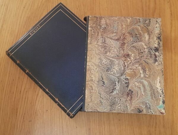Custodia con margine in pelle e carta marmorizzata.