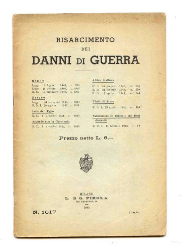 In 8vo (cm 23,5x16) brossura pag.47 -- Leggi e decreti dal 1940 al 1943.