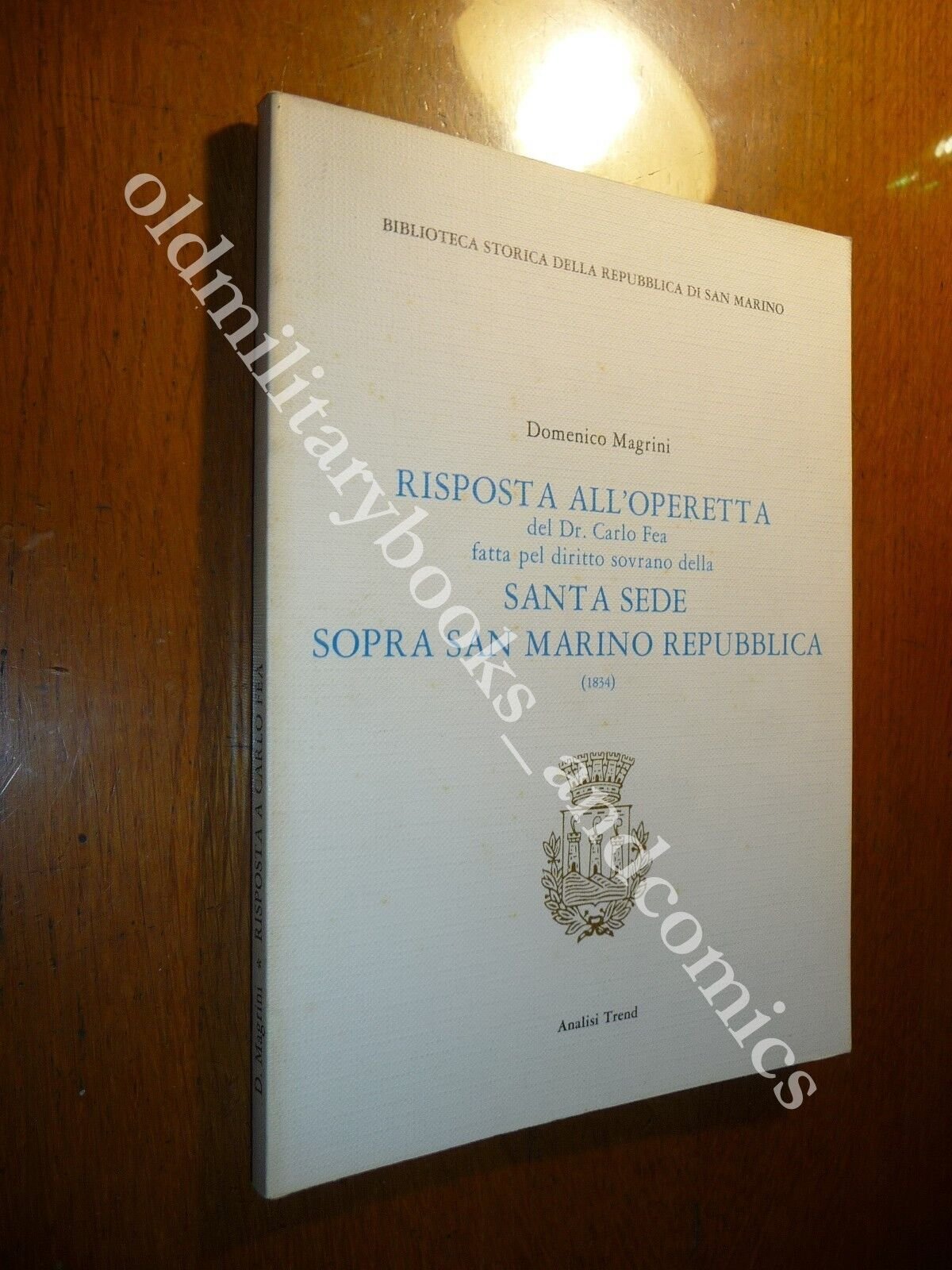 TITOLO: RISPOSTA ALL'OPERETTA DEL DR. CARLO FEA FATTA PEL DIRITTO SOVRANO DELLA SANTA SEDE SOPRA SAN MARINO REPUBBLICA (1834)
