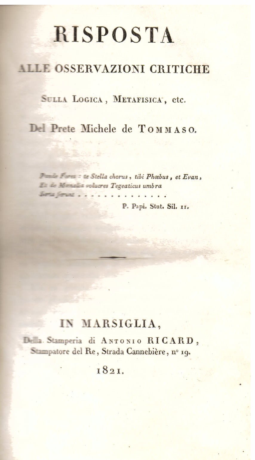 Risposta alle osservazioni critiche sulla logica, metafisica, etc