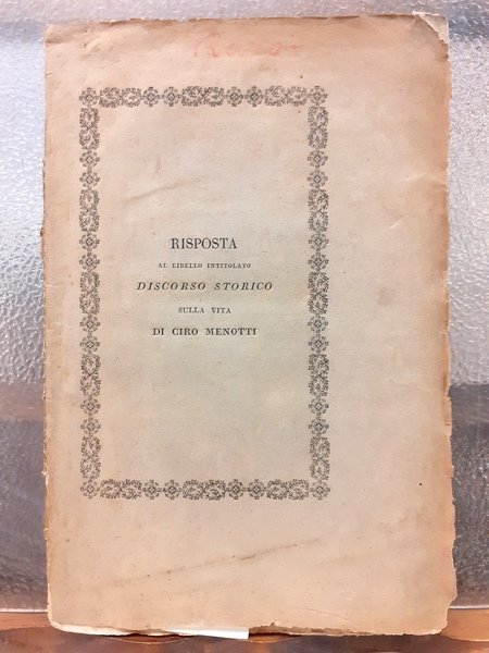 RISPOSTA DEI REDATTORI DELLA VOCE DELLA VERITA' AL LIBELLO INTITOLATO DISCORSO STORICO SULLA VITA DI CIRO MENOTTI.,