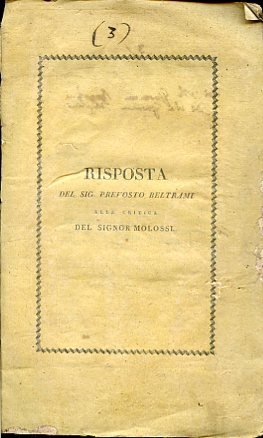 Risposta del signor prevosto Paolo Beltrami propagatore della nuova scoperta sui paragrandini e parafulmini alla critica del signor Pietro Molossi