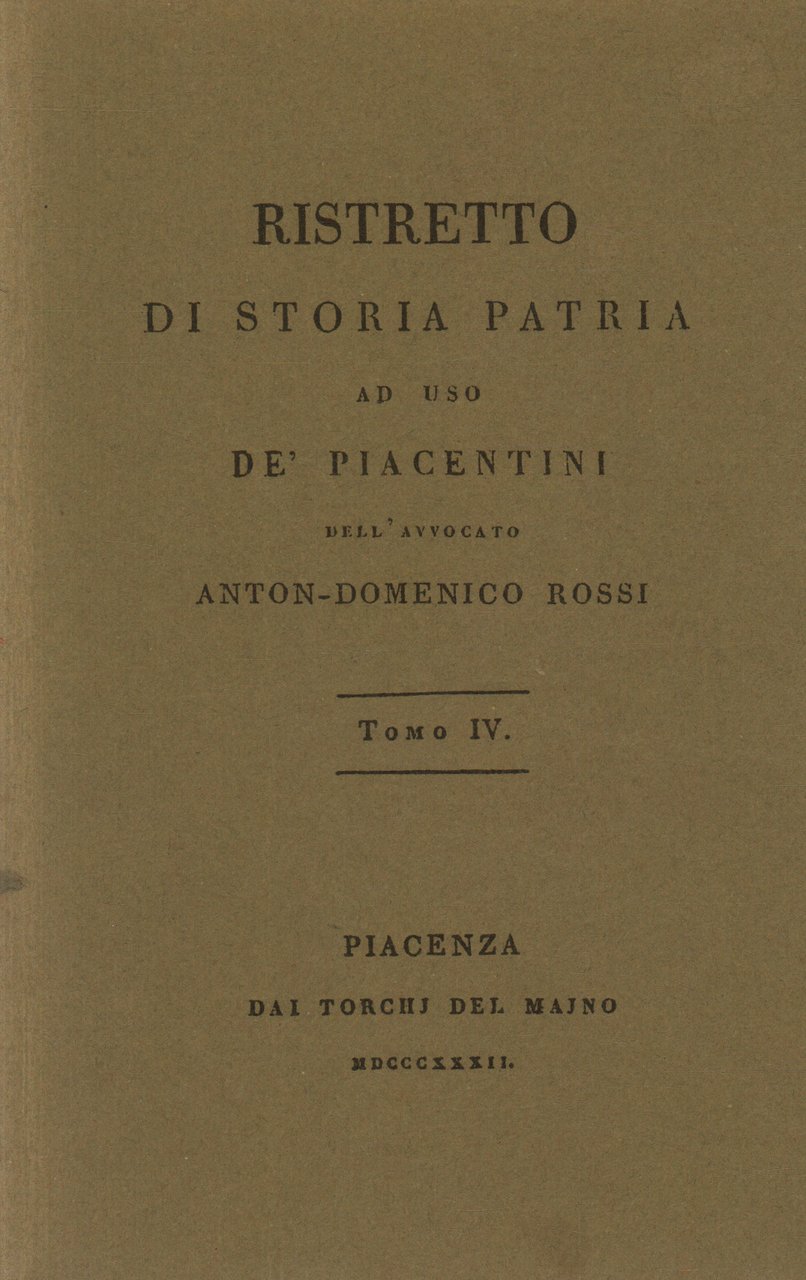 Ristretto di storia patria ad uso de' piacentini. Tomo IV