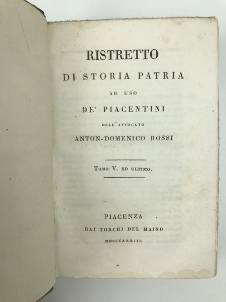 Ristretto di storia patria ad uso dei piacentini dell'Avvocato Anton-Domenico Rossi. Tomo I [-V ed ultimo].