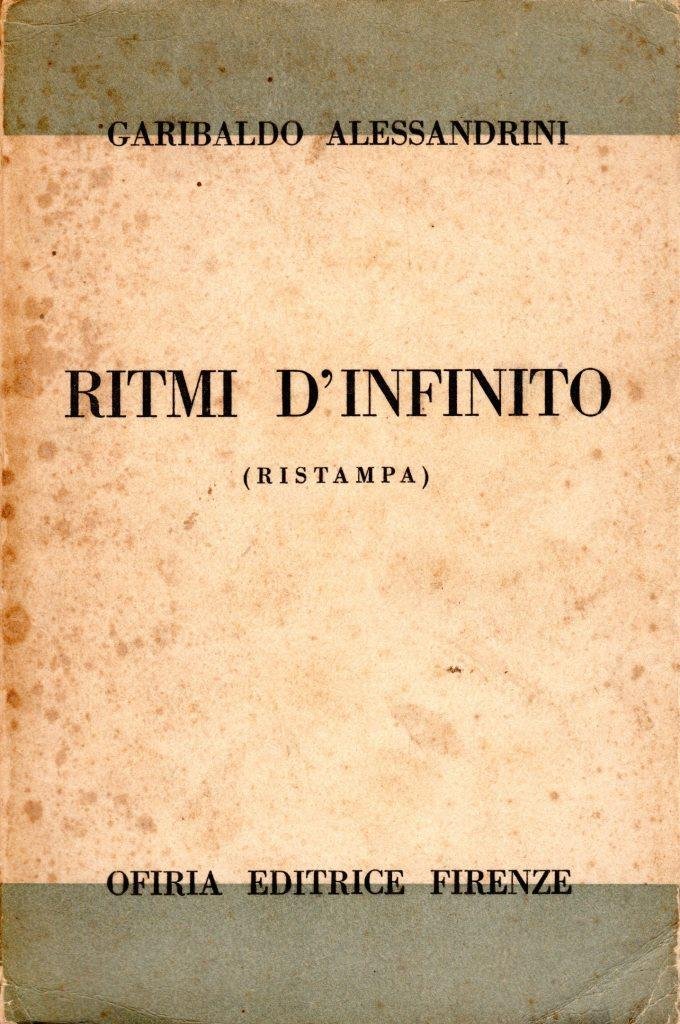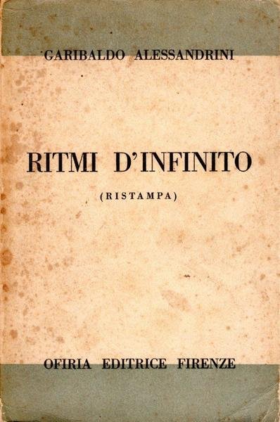 Ritmi d'infinito, edizione ottobre 1951, pp. 175, formato 12,5 x 18,5.<BR>Copertina morbida di colore beige e verde con titoli in nero al piatto anteriore e sul dorso. In prima pagina presente dedica dell'autore, datata gennaio 1952. <BR>Fioriture ai piatti. Leggere imperfezioni dovute al tempo. nel complesso buone condizioni.