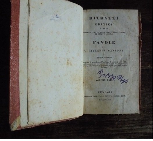 RITRATTI CRITICI OVVERO BREVI PITTURE DE`VIZI DELLE STRAVAGANZE DI QUESTO SECOLO E FAVOLE DI P. GIUSEPPE MANZONI.