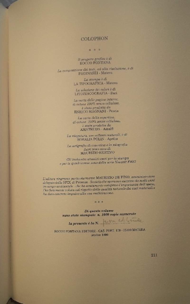 In 4', cart. ed., pp. 211ill. col. n.t., xilografia fuori testo di Maurizio Restivo, volume stampato in 1000 copie numerate, la presente "prova editoriale"; introduzione di Elda Pucci, prefazione di Francamaria Trapani, illustrazioni originali di Maurizio Restivo; segni d'uso , piccole abrasioi alla cop., interno in orrimo stato. ***Due to bureaucratic reasons, books dated over 70 years old cannot be immediately exported, please contact us before placing the order.***