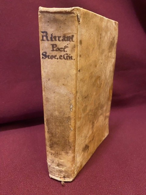 Legatura coeva in tutta pergamena rigida, titolo manoscritto al dorso, buone condizioni generali, foxing al frontespizio e tra le pagine dovuto alla qualità della carta. Grande vignetta incisa al frontespizio, deliziose testatine incise, finalini e grandi capilettera. Edizione originale. Sc. R.