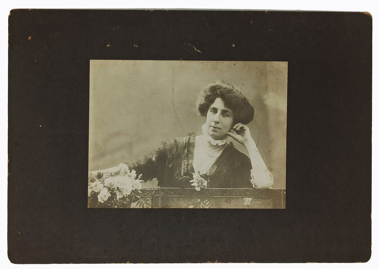 fotografia originale di dimensioni 20 X 15 cm circa, incollata su un cartoncino rigido (anch'esso originale) di dimensioni: 36,5 x 25,5 cm circa. Non è presente alcuna indicazione riguardante il fotografo. STATO DI CONSERVAZIONE: La fotografia presenta qualche macchiolina ma, nel complesso, si può definire ben conservata. Il Cartoncino, invece, presenta una rottura (senza mancanza) al di sopra della fotografia e imperfezioni dovute al tempo. PRESUMIBILMENTE LA FOTOGRAFIA E' STATA SCATTATA NEGLI ULTIMI ANNI DELL'800 O NEI PRIMISSIMI DEL '900 in pieno periodo Liberty (come si evince dal supporto su cui poggia un braccio la donna ritratta). PRESUMIBILMENTE LA FOTOGRAFIA E' STATA SCATTATA NEGLI ULTIMI ANNI DELL'800 O NEI PRIMISSIMI DEL '900 in pieno periodo Liberty (come si evince dal supporto su cui poggia un braccio la donna ritratta).