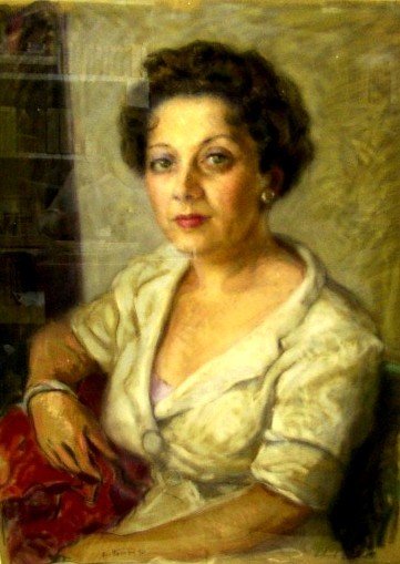 Pastello su cartoncino, raffigurante busto di donna in abito bianco, cm. 69 x 52 ca. Montato su cornice moderna di cm. 78 x 60 ca. Firma in basso a sinistra