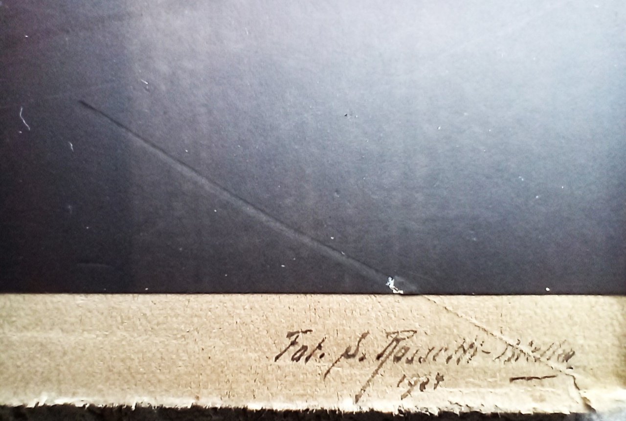 Fotografia incollata su rigido cartoncino, probabilmante rifilata. Riporta in basso a destra la firma autografa del fotografo biellese con data 1907