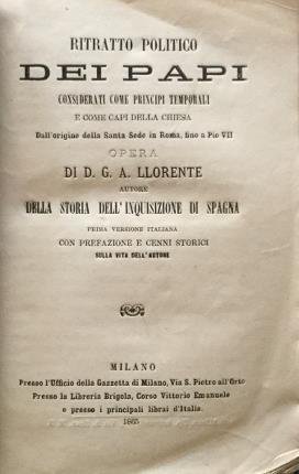 Ritratto politico dei Papi. Considerati come principi temporali e come capi della Chiesa. Dall'origine della Santa Sede in Roma, fino a Pio VII. Prima versione italiana con prefazione e cenni storici sulla vita dell'autore.