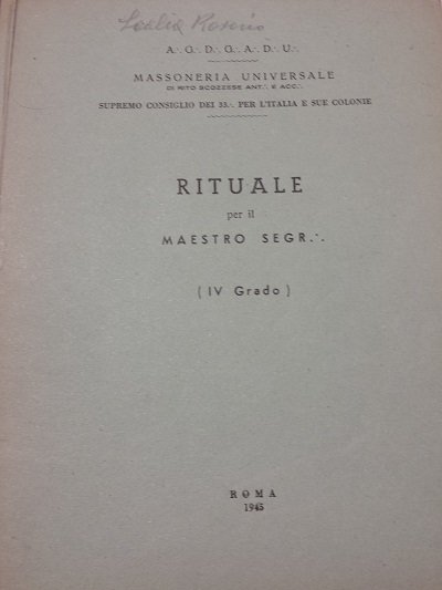 RITUALE PER IL MAESTRO SEGRETO IV GRADO
