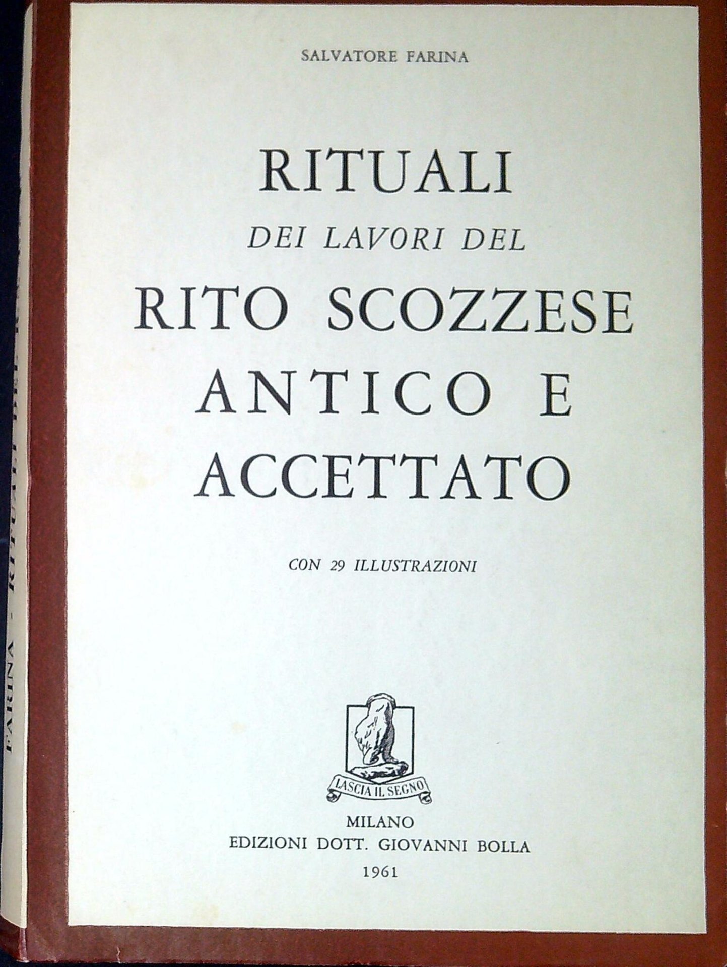 Farina, Salvatore Rituali dei lavori del rito scozzese antico e accettato. Milano, G. Bolla 1961, XVI, 236 p. : ill. ; 24 cm (67428)